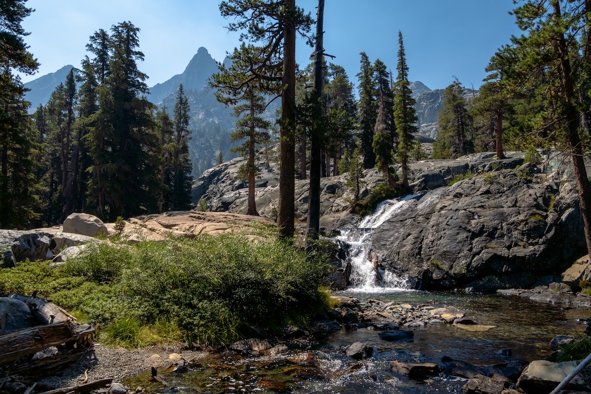 It was time to head back to Agnew Meadows. We ventured back down the short scenic trail to Ediza Lake. After taking one last break at the photogenic lake, we continued down the trail towards Shadow Lake. We passed some beautiful creeks that cut right into the granite slabs we hiked upon. There were waterfalls abound. Our trail descended taking us back into the tree line.