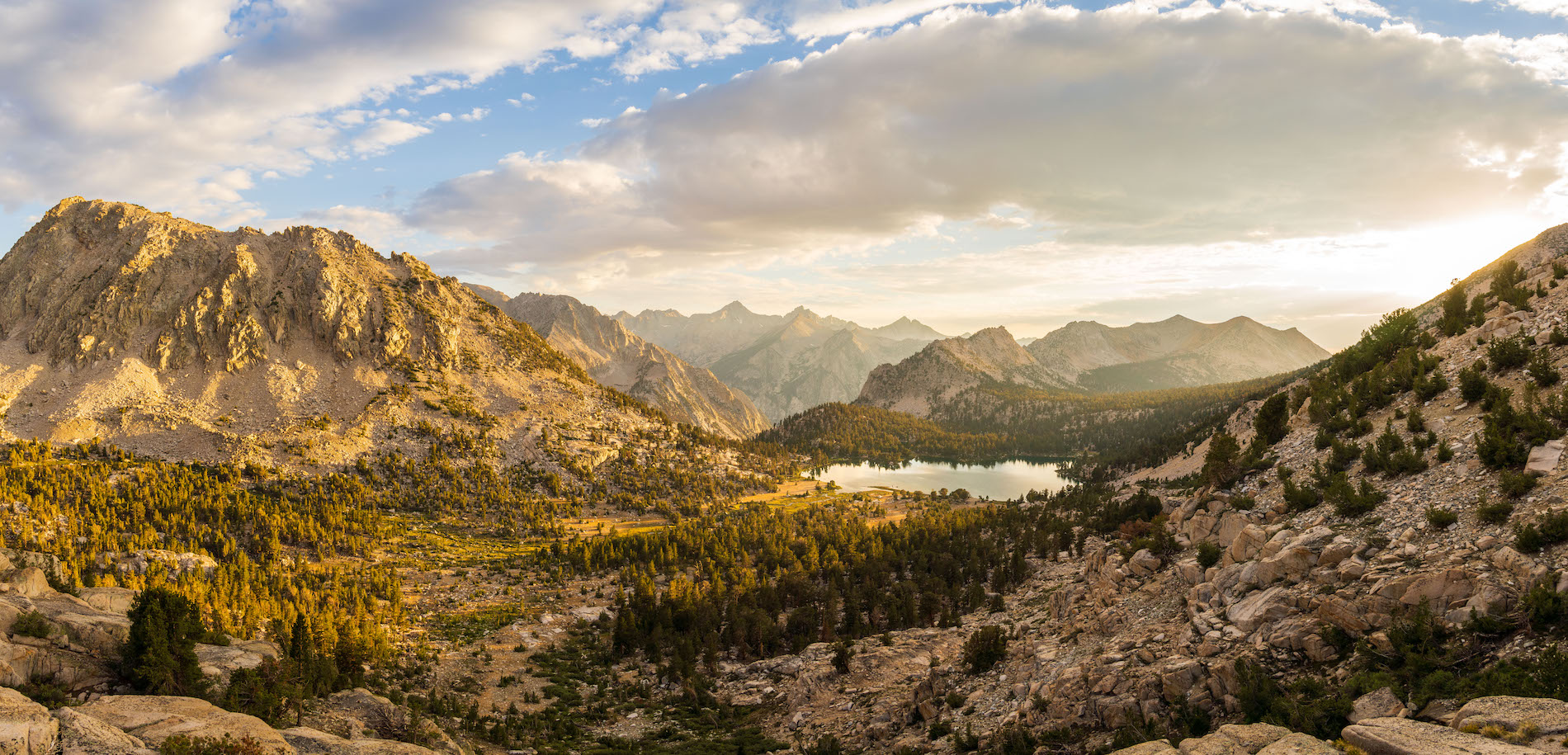 Rays of golden light illuminate this gorgeous glaciated valley in King's Canyon National Park. Printed on canvas