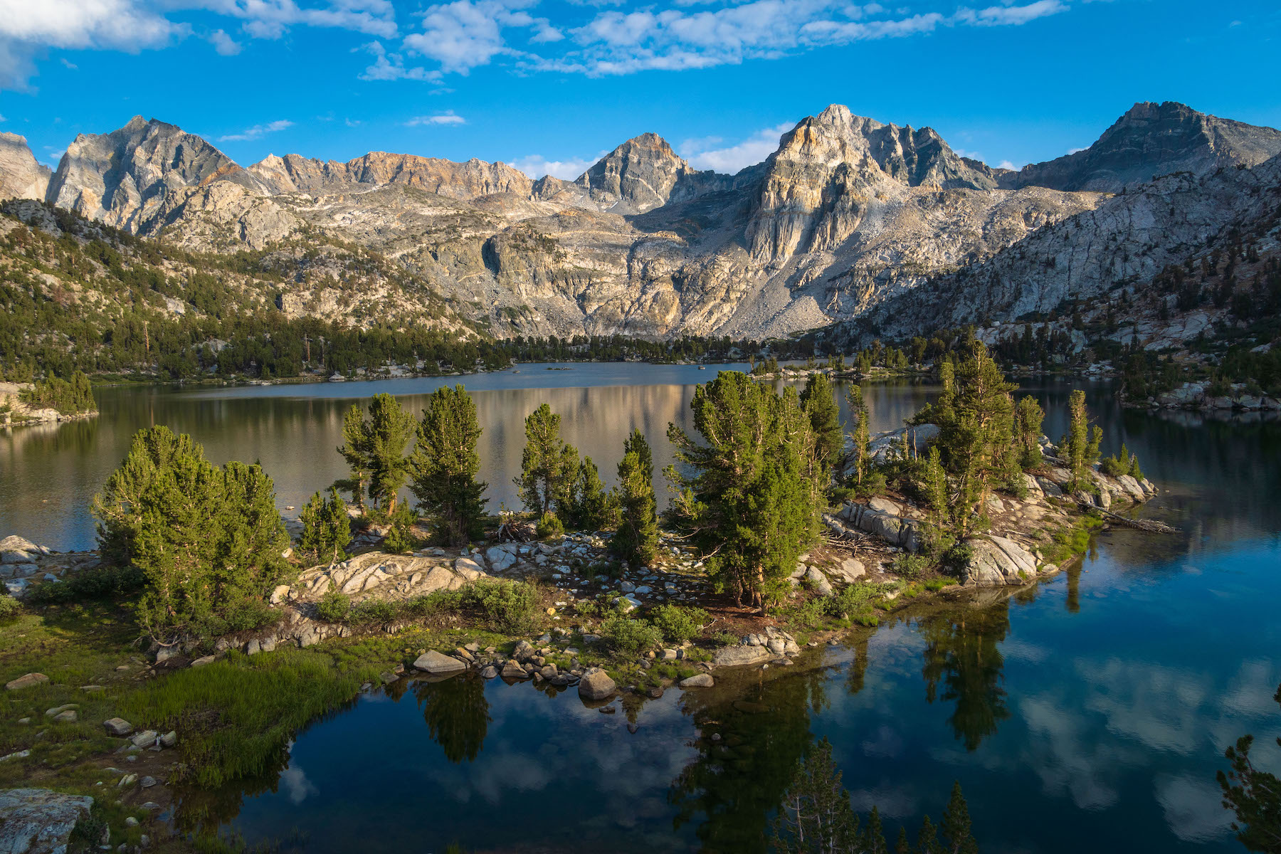 The serene shoreline of Rae Lake in the late afternoon. Printed on stretched canvas.